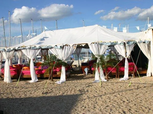 But why stop there? Creator Jenny Lederman, a former barrister, decided to also include Italian mattresses, Hungarian down duvets, Greek sheepskin rugs, adjoining bathrooms, and outdoor deck chairs for the verandah for your “camp.” There are 50 tents, warm showers and loose, staff and service… be it a massage or a banquet, a bottle of Veuve Clicquot or Cloudy Bay, a pint of Kingfisher or Badger Beer, we will have it for you.