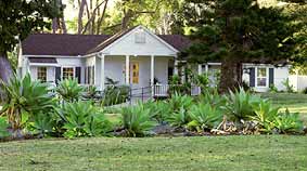 Outside is a beautiful setting for a picnic or a sit down if you are feeling light headed from too much tasting. Quaint foot paths mark the way through lush green grounds shaded by hundred year old trees, towering over you as they reach high into the blue sky.