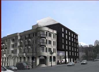 It’s a beautiful pair of buildings located between downtown Montreal and the Plateau district. One was built in 1915 (the Edifice Godin); the other opened early this year (the Contemporary). The lobby connects to a terrific, quite spacious in-hotel gym. But the rooms are the big whoop with huge king-sized beds, Egyptian cotton sheets, 27″ TVs with flat screens, Internet access, spa robes, downtown views, and bathrooms with all kinds of cool fixtures. Hotel Godin