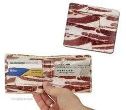 Put some hip into your hip pocket with a whimsical Bacon Wallet! Great for bringing home the bacon (sorry). Sleek, yet meaty. Each 4-1/4″ x 3-3/4″ faux leather wallet has plenty of pockets for your cold hard cash and copious cards.