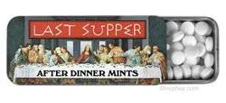 Are the flavors of your last supper lingering too long? Freshen your palate with the miraculous breath-cleansing power of these Last Supper After Dinner Mints. Each collectible, 3″ x 1-1/4″ x -1/2″ tin contains one hundred mints that you can share with your apostles!