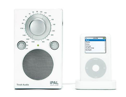 Another “simple but beautiful” docking station. This one from audio legends Tivoli whose radios are the ones by which all others are measured. One of Tivoli’s most famous radios is the iPAL and it now sports an auxiliary input to connect your matching iPod.